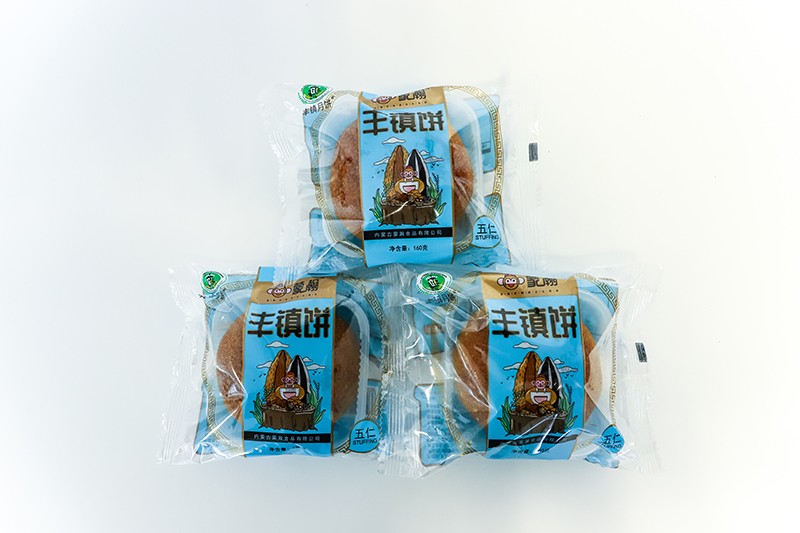 丰镇地处塞外边地,月饼制作完全秉承了胡饼制作的正宗。原料只用面粉、胡油、食糖和少量碱面揉和烤制。但其做法与其他地方不同。分满油糖,二、四油糖两种。每一百斤面,油糖各用30斤,变成成品货共160斤,此为满油糖。每一百斤面,油糖各用25斤,叫四油糖,用20斤叫二油糖。烤制是上下火铛合盖而烤。上面的火铛火在上,由三股铁索拴吊,用杠杆原理起合,翻看火色,下铛即是大的平锅,火在灶内。烤制的成色全凭看火师傅火候的掌握技术是否恰到 好处,达到微焦而不糊,内外通热,无一点夹生。因将水分炉尽,因此放在瓷缸中耐久不霉。